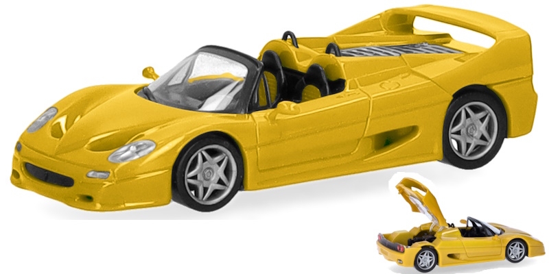 Giallo Modena heißt die Farbgebung des Ferrari F50 Spider, der als High-Tech Modell mit beweglicher Heckklappe (Motorabdeckung)