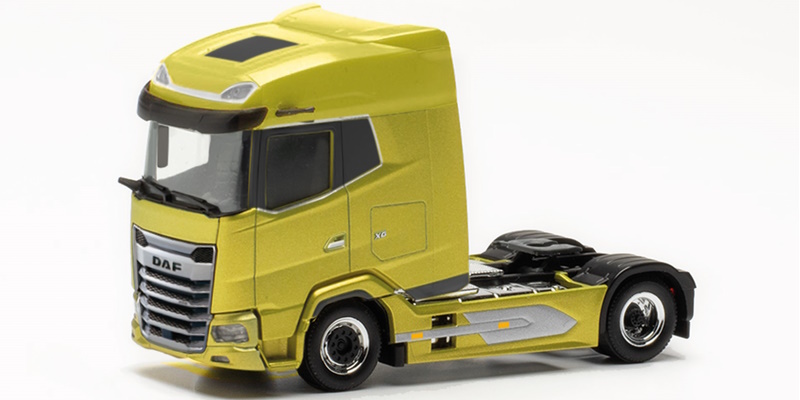 Auch die DAF XG-Kabine darf in der Präsentationsfarbe tyscan yellow metallic nicht fehlen. Das Modell der DAF XG+ (315784) in der auffälligen Farbe war mit Auslieferung ausverkauft.