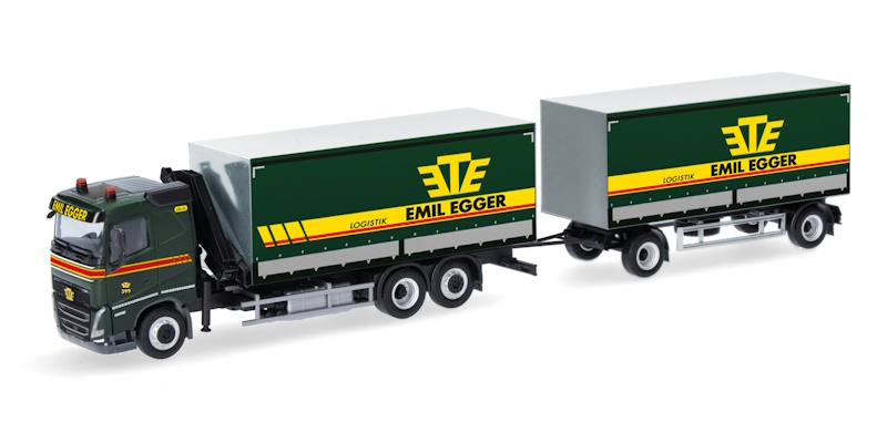 Volvo FH 2020 Flachdach Planen-Hängerzug mit Kran "Emil Egger" (CH)