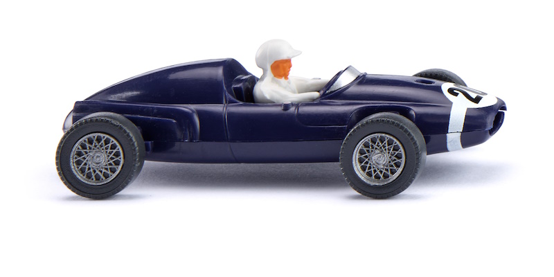 Karosserieober- und unterteil schwarzblau, Rennfahrer weiß eingesetzt mit koloriertem Gesicht. Frontscheibe und Tankdeckel gesilbert, schwarze Startnummer „20“ auf weißem Untergrund mit Bauchbinde.