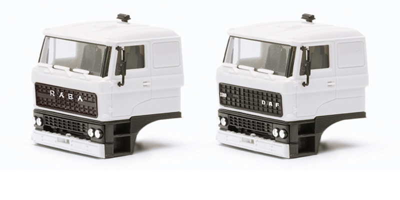 Der DAF 2800-3300 ist ein Klassiker und der Rába eine positive Nebenerscheinung. Mit diesem Set ist es möglich, zwei komplette Fahrerhäuser des DAF 2800-3300 (lange Kabine) zusammenzubauen. Wahlweise kann dann entweder der Kühlergrill DAF oder der Rába eingesetzt werden, da beide zweifach beiliegen. Passende Fahrgestelle sind 085816 (2achs Zugmaschine) oder 085823 (3achs Zugmaschine).