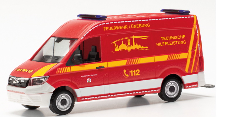 In Lüneburg in Niedersachsen, südlich von Hamburg gelegen, wird dieser MAN TGE von der Feuerwehr als Fahrzeug für technische Hilfeleistung eingesetzt.