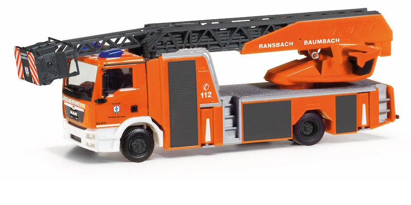 Folgend auf die beiden Modellen (097680 und 097697) aus den Neuheiten Januar-Februar 2024, ergänzt nun eine neue Drehleiter auf MAN-Fahrgestell die Serie der Freiwilligen Feuerwehr Ransbach-Baumbach aus dem Westerwald. Nahe der A3 gelegen, wird die Wehr nicht selten auf die Schnellstraße zum Einsatz gerufen.