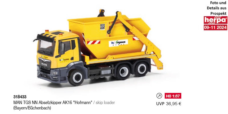 UVP lt. Hersteller 36,95€: https://archiv.herpa.de/man-tgs-nn-absetzkipper-ak16-hofmann-318433