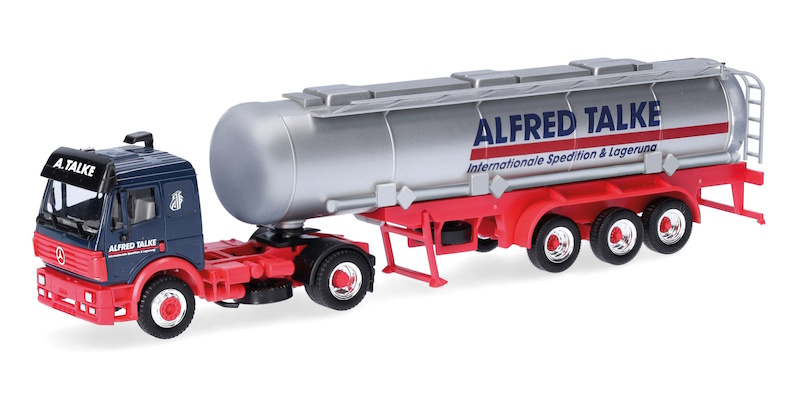 In Hürth wurde bei TALKE im letzten Jahr ein Klassiker neu aufgebaut. Hierbei handelt es sich um diesen Mercedes-Benz SK 94 mit entsprechendem Tank. Alle Finessen des Originals sind im Modell leider nicht umzusetzen, doch wurde alles aus dem Formenfundus herangezogen, um das Möglichste zu realisieren. Der Youngtimer erscheint in limitierter Kleinauflage im beliebten Farbschema blau/rot.
