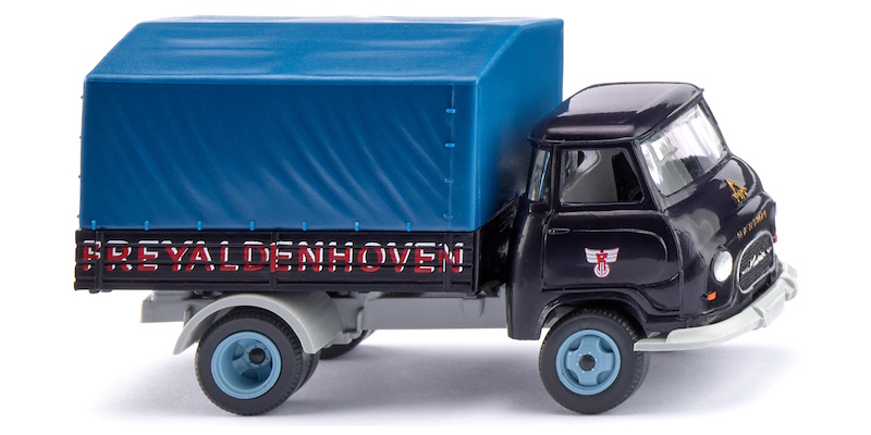 Fahrerhaus und Pritsche schwarzblau, Inneneinrichtung mit Lenkrad basaltgrau. Dunkelachatgraues Fahrgestell. Felgen pastellblau, Plane azurblau. Pritsche mit Schriftzug „Freyaldenhoven“. Kühlergrill eisengrau, Schriftzug „Kurier“ und Zierrahmen gesilbert. Hanomag-Schriftzug und -Logo gold bedruckt. Blinker orange. Rücklichter rot bedruckt.