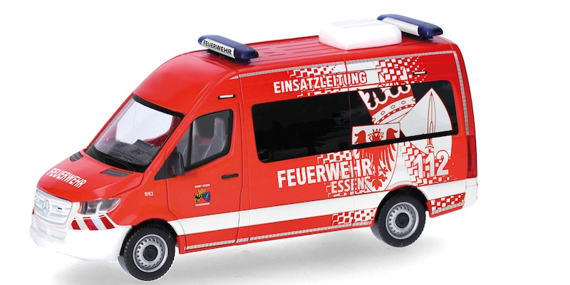 Das neue Design der Feuerwehr Essen, welches erstmals beim Rettungswagen in 2023 (097307) zum Einsatz kam, wird auch hier aufgebracht.