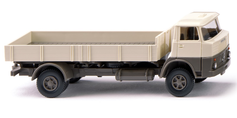 Es waren die hundertfach ausgelieferten Serienfarben der Kasseler Lkw-Bauer: Wenn der Henschel HS 14/16 ausgeliefert wurde, war eine zweigeteilte Lackierung des kubischen Fahrerhauses kundenseitig nicht nur erwünscht, sie galt überdies als hochmodern – es war das Signal für den Aufbruch in die Sechzigerjahre. WIKING-Modellbaumeister Alfred Kedzierski hatte damals ganze Arbeit geleistet. Als Henschel 1961 zur IAA die neue Lastwagengeneration vorstellte, gehörte auch die zukunftsweisende Reihe von kubischen Fahrerhäusern dazu. Der französische Designer Louis Lucien Lepoix hatte sie entworfen und damit allen Henschel fortan ein wirkungsvolles Gesicht gegeben. WIKING miniaturisiert den gelungenen Pritschen-Lkw, der noch heute dank seiner runden Scheinwerfer und des optisch lächelnden Charakters Sympathie versprüht.