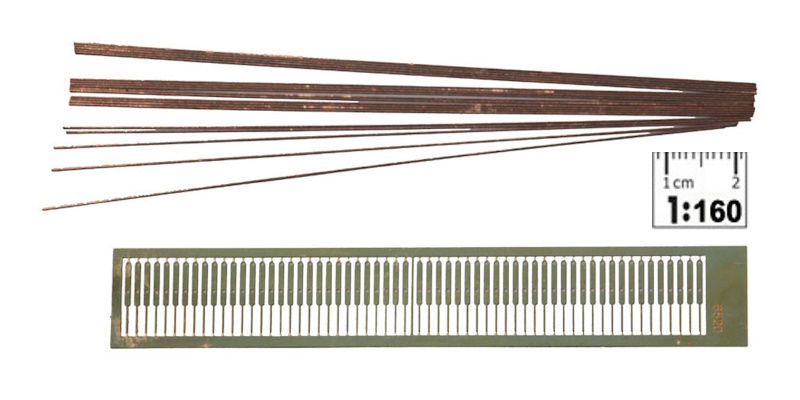 1:160 Metallgeländer (60 Pfosten, 20 Kupferdrähte)