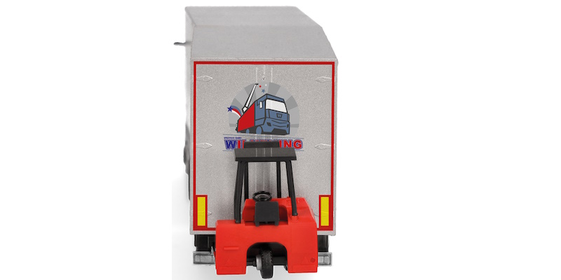 Neu ist an dem Herpa-Modell der Mitnahmestapler, der erstmals an einem Volumenzug montiert wird.