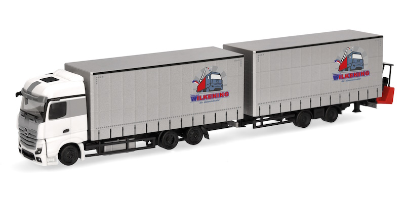 Mercedes-Benz Actros Jumbogardinenplanentandem-Hängerzug mit Stapler "Wilkening"