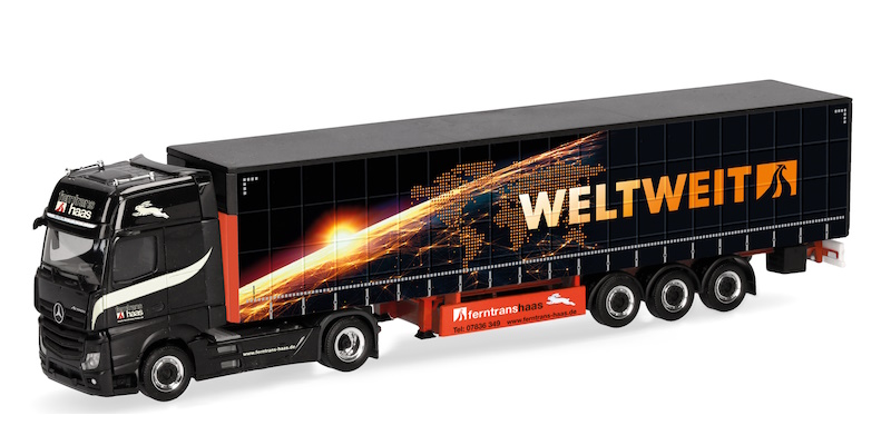 Mercedes-Benz Actros L 18 Gigaspace Gardinenplanen-Sattelzug "Ferntrans Haas/weltweit"