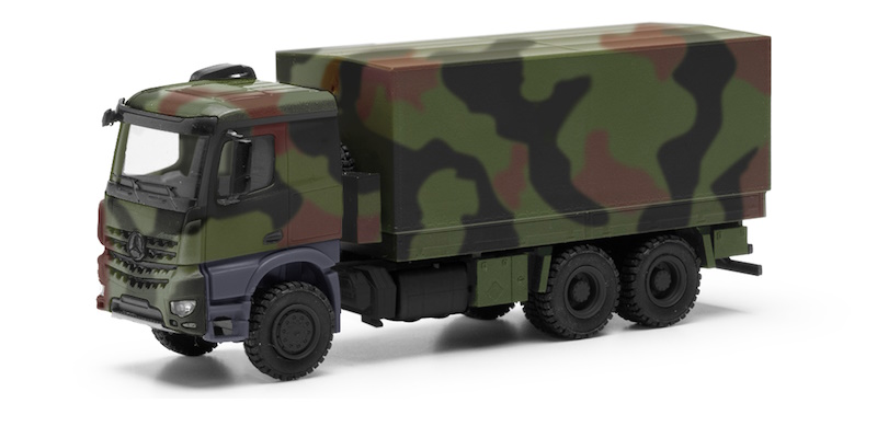 Der Mercedes-Benz Arocs bedient auch den Military-Bereich. Der Planen-LKW auf einem Allradfahrgestell wird neu aufgelegt, wobei die Grundfarbe unter dem Tarnfleck nun matter ausgeführt sein wird.