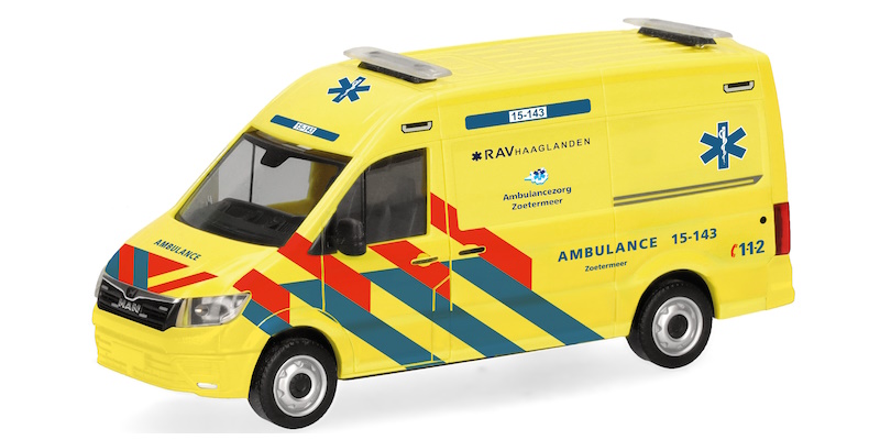 Als Ambulance 15-143 wird der Krankentransportwagen von Herpa als Miniaturmodell angeboten.