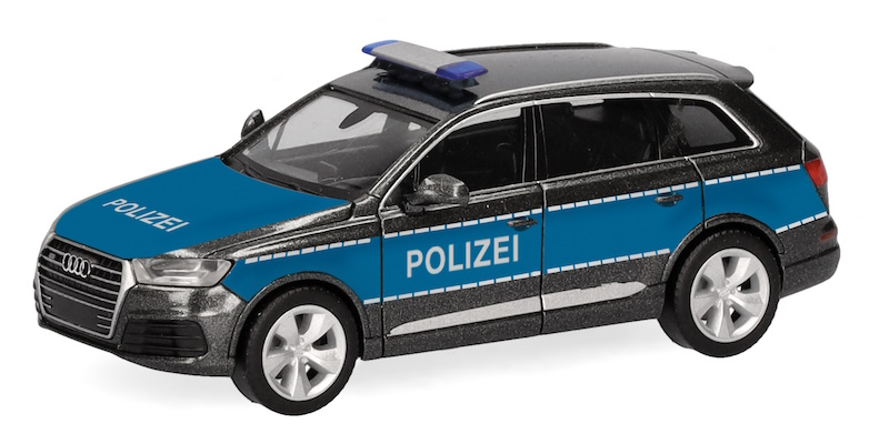 Audi hat diesen werksseitig graphitgrau metallic lackierten SUV als Vorführfahrzeug für die Polizei umgerüstet und den Dienststellen zur Verfügung gestellt.