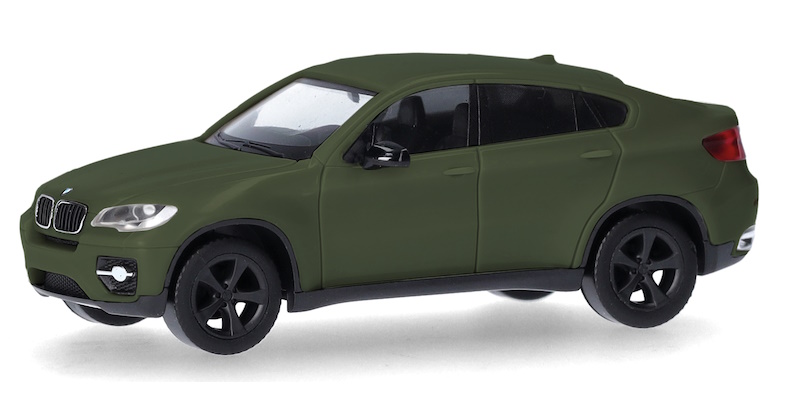Der edle SUV aus München, der BMW X6, der Baureihe E71, erscheint in schlichtem mattoliv und schwarzen Applikationen, sowie getönten Scheiben.